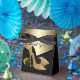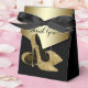 Eleganta svarta och guld glitter högklackade sko favoritlådor. Du kan lägga till text på framsidan och baksidan av denna vackra svarta och guld födelsedagsfavoritlåda och välja din bakgrund och bandfärg. Denna vackra svarta och guld högklackade sko favoritlåda är perfekt för en kvinnas 50-års födelsedagsfest.