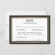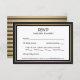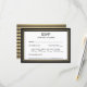 Komplettera svarta och guldgula festerinvitationer med eleganta svarsbrevskort för RSVP. All formulering i denna mall är enkel att anpassa eller ta bort vid behov. Kortet innehåller måltidsval och möjlighet att svara via webbplats eller e-post. Den svarta, vita och guldgula designen har en modern falsk-folie-kant, klassiska ränder och vintage Art Deco-inspirerad typografi. Detta annonskort är ett stilrent sätt att begära att vänner och familj svarar på din kommande speciella dagsfirande. Observera att guld är tryckt färg, inte metallfolie.
