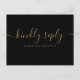 Ett elegant guld signatur skript RSVP-kort med chic typografi på svart bakgrund. Baksidan visar dina detaljer och en rolig gäst sång förfrågan. Designad av Thisisnotme