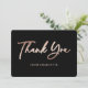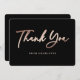 Uttryck din tacksamhet med detta minimalistiska, men ändå eleganta svarta och roséguldfärgade tackkort med ett modernt falskt roséguld folie-skriftsnitt på framsidan och anpassad text på baksidan.
