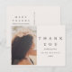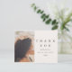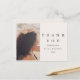 Detta moderna och minimalistiska svarta och taupes bröllopsfest tack vykort har elegant typsnitt och ett foto med ett redigerbart tackmeddelande och returadress på baksidan.