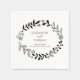 Med en elegant svart-vit blomsterkrans och chic typografi kan dessa eleganta botaniska pappersservetter anpassas med era namn. Designad av Thisisnotme©