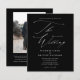 En elegant enkel svart och vit budget bröllopsinbjudan med modernt skrivstil och klassisk text. Baksidan har ett foto och QR-kod RSVP. Klicka på redigeringsknappen för att anpassa denna design.