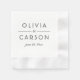 Klassiska svarta serif-parnamn med ett flödande script- och datumampersand framstår vackert mot en krispig vit servett i denna eleganta monogrambröllopsdesign. Det rena, högkontrastiga utseendet kompletterar alla brölloppsfärgpaletter och fungerar som en polerad accent på er mottagning, brudlunch eller repetitionmiddag. Personalisera med era namn och datum. Finns även i ytterligare servettfärger.