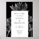 Denna eleganta, moderna svarta och vita botaniska blomstermönster välkomstskylt för bröllop kan anpassas med din information i chic typografi. Designad av Thisisnotme©