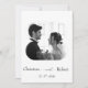 En svartvit bröllopsinbjudan med elegant har en tidslängd och sofistikerad utformning. Texten finns vanligtvis i ett förfinat serigrafi- eller kalligrafteckensnitt med svarta bokstäver på en skarp vit bakgrund. Minimalistiskt inslag som delikat gräns, monogram eller blommigtens konst tillför subtil charm. Designen gör att du inte blir otydlig och fokuserar på en ren och balanserad layout för att visa en känsla av klassisk elegans och formalitet.