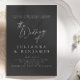 Denna moderna minimalistiska bröllopsinbjudan har vacker vit typografi på en elegant svart bakgrund.