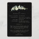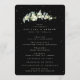 Ett svart bröllopsprogram/ceremoniordning, med en förteckning för ett litet bröllopssällskap och ett tackmeddelande på baksidan. Med en elegant stam av handmålade snöbär och eukalyptus samt en spridning av prickar. All text är helt redigerbar. Se denna samling i min butik för program med alternativa formuleringar/layouter och i olika storlekar/färger/ former. Koordinerande föremål finns också tillgängliga.
