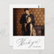 Elegant svart tackskript foto bröllop vykort