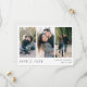 Denna enkla, stilrena moderna platta kortmall för "spara datum" för bröllop med tre foton har dina foton och "SPARA DATUM" uttryckt med en slående blandning av två distinkta typsnitt, med "och" i ett ljust, flödande skrivstil mellan de andra två orden, som är i versaler med en djärv, skarp formell look. Detta element i designen är en bild och kan inte ändras. Men du kan välja att ändra typsnitt, skiljetecken eller färg som används för den andra texten på framsidan och/eller baksidan. Till exempel kan du välja att ge en viss färg åt dina namn och/eller datumtext på framsidan. Eller så kan du välja att ta bort något eller ändra ett textfält helt med ett annat meddelande. Standardfärgen för dina namn och datum på framsidan är en något mjukad svart. På baksidan valde vi en ovanlig ordning för informationen, och satte "vänligen spara datum"-text