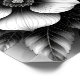 Den här slående svarta och vita blommigten har en vackert detaljerad stor blomma omgiven av lagrade, texturerade löv. Monokroma paletten tillför en modern och elegant beröring, skapar perfekten för väggkonst, hemdekorering, kläder eller kontorsmaterial. Idealisk för minimalister, blommigt älskare eller någon som tittar att lägga till en tidslängd, konstnärligt vibb i sitt rum eller i sin produktsamling