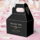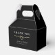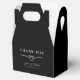 Tacka era gäster med stil med denna eleganta svarta vigselfavorlåda i guld. Med ett romantiskt hjärta av guldrep, minimalistisk svart bakgrund och raffinerad typografi är denna favorlåda perfekt för att förpacka godsaker, små presenter eller sötsaker. Personifiera den med era namn och bröllopsdatum för en sofistikerad och minnesvärd finish.