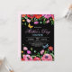 Elegant vår vildblomma chic morsdags inbjudan. Vacker firande med mor med rosa och röda blommor, fjärilar och trollsländor. Anpassa denna mall med din information. Svart bakgrund på framsidan och rosa på baksidan. Färgen är anpassningsbar.