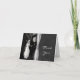 Vacker bröllopsfototack-kort, gjort med ett bröllopsfotografi på vänster sida av kortet. Grafik av ett elegant vitt sidenband med grafik av gnistrande diamantdekorationer delar kortet mellan fotografiet och den vackra svarta damastbakgrunden på höger sida. Vit skrivstilstext läser "Tack" på höger sida av kortet. Personifiera genom att lägga till din egen text och ditt eget bröllopsfoto. Så underbart sätt att skicka tack efter bröllopet.