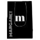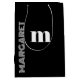 elegant svart och vit anpassad initial namn medium presentbag, Förhöj din presentgiving med denna eleganta svarta och vita anpassade initialbokstav namn medium presentpåse. Designad med en modern, minimalistisk estetik, har denna stilrena påse en djärv personlig initial och namn, vilket skapar en sofistikerad och tidlös look. Den klassiska monokroma färgpaletten tillför en touch av lyx, vilket gör den perfekt för alla tillfällen - från födelsedagar och bröllop till företagsarrangemang och speciella firanden. Perfekt för dem som uppskattar personliga detaljer och modern elegans, gör denna anpassade presentpåse varje gåva till en minnesvärd upplevelse.