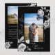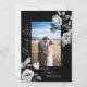 Uttryck din tacksamhet med detta eleganta svart-vita blomstervigselkort med tack, med en vacker anpassningsbar bild av det lyckliga paret. Den sofistikerade designen inkluderar klassiska rosillustrationer och personliga detaljer, vilket gör det perfekt för att tacka gästerna för deras närvaro och generösa gåvor på er speciella dag. Fullt anpassningsbart för er unika vigselfest.
