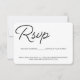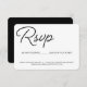Enkel, elegant och använder ett trendigt handskrivet typsnitt, svart och vitt. Klassisk och chic. Ange antalet gäster för varje inbjudan du skickar ut med dessa RSVP-kort, dirigera gäster till din bröllopswebbplats för att svara för att undvika att behöva posta RSVP-korten tillbaka till dig. Gör det bekvämt och enkelt för dina gäster.