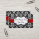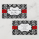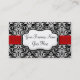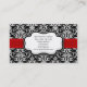 Bedårande chic och sassy högkontrast svart och vit flickig damastmönster med en klassisk barock känsla, kombinerat med den moderna känslan av en ljusröd accent remsa som ser ut som ett sidenband. Personifiera det med kvinnors namn eller annan anpassning. Design Copyright © CustomInvitesOnline.com