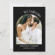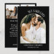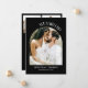 Elegant svart-vit kalligrafibröllopsannonseringsmallkort med handskrivna typografi text i en båge med krullor som säger "vi sa ja" med era namn. Lägg till två bilder till den här produkten för att göra den till er egen. Fotot kommer att placeras på baksidan av kortet tillsammans med ert bröllopsfotografi och ert önskade meddelande.