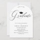 Elegant svart-vit examensfestbåge med skrivstil inbjudningar