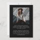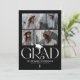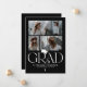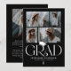 Meddela om din examen med tidlös, sofistikerad stil med detta eleganta svart-vita examensmeddelande. Med en trendig svart bakgrund framhäver designen ordet ”GRAD” i ett modernt serifferat typsnitt, accentuerat med en stilren examensmössa-ikon ovanför ”R”. Den flytande svansen på ”R” övergår i en snygg tofs som kopplar samman examenstudentens namn, skola och avgångsår, vilket skapar en sammanhängande och exklusiv finish.