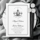 Elegant, svart och vit chandelier Games formella bröllopsinbjudan. Lägg till lite gammaldags sofistikering till bröllop med denna vackert designade inbjudan. Framsidan har en svart chandelier vintage-stil ovanför anpassningsbarna, som är innesluten i en tredubbel gräns i svart för en förfinad avsluta. Den omvända sidan kompletterar den här utformningen med en samordnad tredubbel vit gräns, som ställs in mot en djup svart bakgrund. Ett val av perfekt för dem som vill ha tidlös respit.