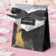 Elegant bröllops- eller speciellt tillfälle förmånsgåva låda, med grafik i en marmorerad look utförd i vitt, svart och guld. Ett svart och guld textområde, på klaffen av lådan, har anpassad text redo att anpassa för din händelse.