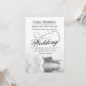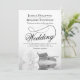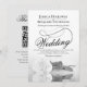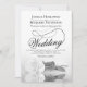 Denna vackra bröllopsinbjudan har ett fantastiskt svartvitt fotografi av en ensam långstjälkad vit ros liggande på sidan som speglas i en vattenpölj med vågor och krusningar. Designen har ett prydligt kalligrafiskt typsnitt med en lång lockig svans som gör den både modern och klassisk. Elegant, sofistikerat och chic sätt att bjuda in dina vänner och familj att dela din speciella dag. Baksidan av kortet har en anpassad anteckning och QR-kod som dirigerar dina gäster till din bröllopswebbplats för detaljer och RSVP.