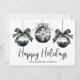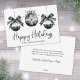 Skicka varma välgångsönskningar med det här eleganta julkortet med platt design på framsidan med tre svartvita vattenfärgskulor, accentuerade med grön eternit och detaljer i form av söta band. "God Jul" står skrivet med graciös typsnitt, med ditt efternamn under i ett klassiskt seriff-skrift för en personlig touch. Du kan enkelt ändra hälsningen till "God Jul" eller "Välgångsönskningar" om du föredrar det.