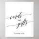 Denna eleganta svarta kalligrafikort och present skylt är perfekt för ett enkelt bröllop eller brud shower. Den neutrala designen har en minimalistisk skylt dekorerad med romantisk och fantasifull typografi. Textraden längst ner på skylten kan anpassas med datumet, brudens och brudgummens namn eller ett kort meddelande som "Tack". Denna skylt kan användas för ett bröllop eller någon annan tillställning eller fest.