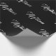 Elegant anpassningsbar-skript kalligrafi namn, text, monogram, mönster Birthday Gift Wrapping Papper. vit text, svart bakgrund.