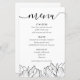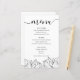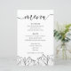 Gästerna kommer att leva den här enkla, moderna och elegant menymallen. Mörk grått-typografi på vit bakgrund med enkel blommigt i grund. Enkel att anpassa med din unika information..