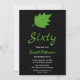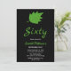 Den här elegantens födelsedagsinbjudan är perfekt för en modern höstfödelsedag. Den enkla designen har grönt höst löv med elegant vit och grönt typografi på svart bakgrund.