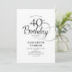 Elegant enkel svartvit 40-årsfestinbjudan. Elegantens utformning med typtypsnittsteckensnitt. Trendig inbjudan-kortets perfekt för en snyggt under firande. Kan anpassas till vilken ålder som helst. Skrivna Zazzle-inbjudningar eller digital utskrivbar mall för omedelbar nedladdning.