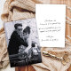 Minimalistiskt, stilrent, elegant manus svartvitt fotobryllop tackkort. Tacka era gäster med detta eleganta minimalistiska tackkort för bröllopsfoto. Med en ren layout, förfinad kalligrafi och en tidlös svart-vit estetik är det perfekt för både moderna och klassiska bröllopsstilar. På baksidan finns ett vackert handskrivet tackmeddelande. Anpassa enkelt bilden och meddelandet för att skapa ett vackert och meningsfullt tackkort till era nära och kära.