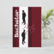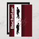 Så du har friat, gått ner på ena knäet, gjort ett frieri och kommer att gifta dig. Grattis! Det är dags för killarna att ha en sista fest för att fira din kommande vigsel. Denna postkortsinbjudan, som har en vältränad man klädd i smoking, fluga och skarp vit skjorta mot en randig bakgrund av vitt, burgunderrött och vinrött med orden Sängkammarparty, kan anpassas helt. För att ändra texten, lägga till eller ta bort detaljer eller rader, klickar du helt enkelt på knappen Anpassa på denna sida. Teckensnittets färg och stil kan också ändras och bakgrundsfärgen kan ändras från vit till valfri färg. För hela utbudet av matchande produkter i denna serie, klicka på länken ”mensgifts” på denna sida, följt av firanden och fester. OBS: Om du tar bort eller lägger till rader, för att säkerställa att de är korrekt justerade, klicka på designen på vänstra halvan av sidan (bilden), som tar dig till designvyn. Håll ned Ctrl-tangenten och vänsterklicka med musen på varje rad i bilden för att markera dem. Du kommer att se en ruta som bildas runt raderna. Välj knappen ”justera” ovanför texten på höger halva sidan och välj ”skala valt vertikalt”. Dina rader kommer nu att vara jämnt fördelade. När du är klar