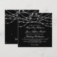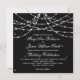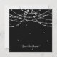 Elegant bröllopsdesign "Spara datum" med klassisk gnistrande svart sträng effekt med natthimmel med stjärnor på svart bakgrund, och anpassade namn och datumtext. Imponera på familj och vänner med denna stilrena och moderna design. Helt anpassningsbar! Lätt att använda och lätt att anpassa. Beställ idag!