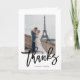 Dessa moderna, eleganta tackkort har ditt favoritbröllopsfoto med ordet "tack" i trendig svart typografi.