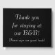 Den här enkla och elegant gästboksdesignen innehåller meddelandena "Tack för att du stannar på vår B&B!" och "Skriv under vår gäst bok!". Den skulle kunna undertecknas av gästerna på en bak- och frukostanläggning. Meddelandena kan vara personlig.