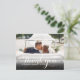 Ett elegant vitt script tack-kort med ert favoritbröllopsfoto, namn och speciella datum. Ni kan anpassa baksidan med era evenemangsuppgifter, ett speciellt tackmeddelande och returadress. Ett perfekt sätt att säga tack! Designad av Thisisnotme©