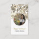 Features a spot for a photo or logo with a hand drawn floral pattern with tan and black typography for business name and profession on the front. Black typography for address, phone number, email, website and socials with QR code on the back all on a white background.