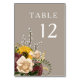 Elegant Taupe Blommig Bröllop Bord Nummer Kort