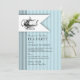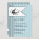 Eleganta ränder och en delikat vintage-tekan kombineras för att skapa en vacker inbjudan till baby shower te-fest. Svart script och versaler på en mjuk babyblå bakgrund, denna söta te-tema design är perfekt för en fest när den blivande mamman väntar en babypojke.
