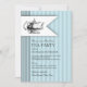 Eleganta ränder och en delikat vintage-tekan kombineras för att skapa en vacker inbjudan till baby shower te-fest. Svart script och versaler på en mjuk babyblå bakgrund, denna söta te-tema design är perfekt för en fest när den blivande mamman väntar en babypojke.