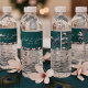 Elegant Teal Blommigt Peacock Bröllop Vattenflaskor Etikett