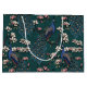 Den här eleganten har stora bipackpåsar av teal-blommigt och Magnolia-blommor med handritade blåa och tealblåsor som trycks på Magnolia träd i blomning i Chinoiserie stil mönster. Allt mot en elegant mörk teal bakgrund med blommigt silhouette-information.
