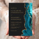 Elegant Teal Blue Agate Guld Bröllop Inbjudningar