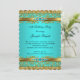 Elegant Teal Blue Guld Damask Diamond Birthday 2 Inbjudningar