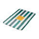 Elegant Teal Blues and White Stripe Monogram Bed & Breakfast bad mat. Körer du en liten Bed & Breakfast ställe eller tänker du på det? Den här eleganten, klassiska, randiga designen i olika tealblad och vita med orange accents hjälper dig att märka ditt företag med smart och glad färg. Lägg till ditt monogram och namn i ställe för att göra det unikt för dig. Du kan också ändra teckensnitt, storlekt teckensnitt, färg och bakgrund.