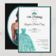 This elegant teal and black 18th birthday debut invitation has a dress, a teal tiara crown, and a black border with a personalizable template to create your own message. The invitation template is customizable in the listing editor and is also available as a digital download that's printable after you personalize it. The elegant and minimalist design is nice for a formal event to celebrate a milestone birthday.